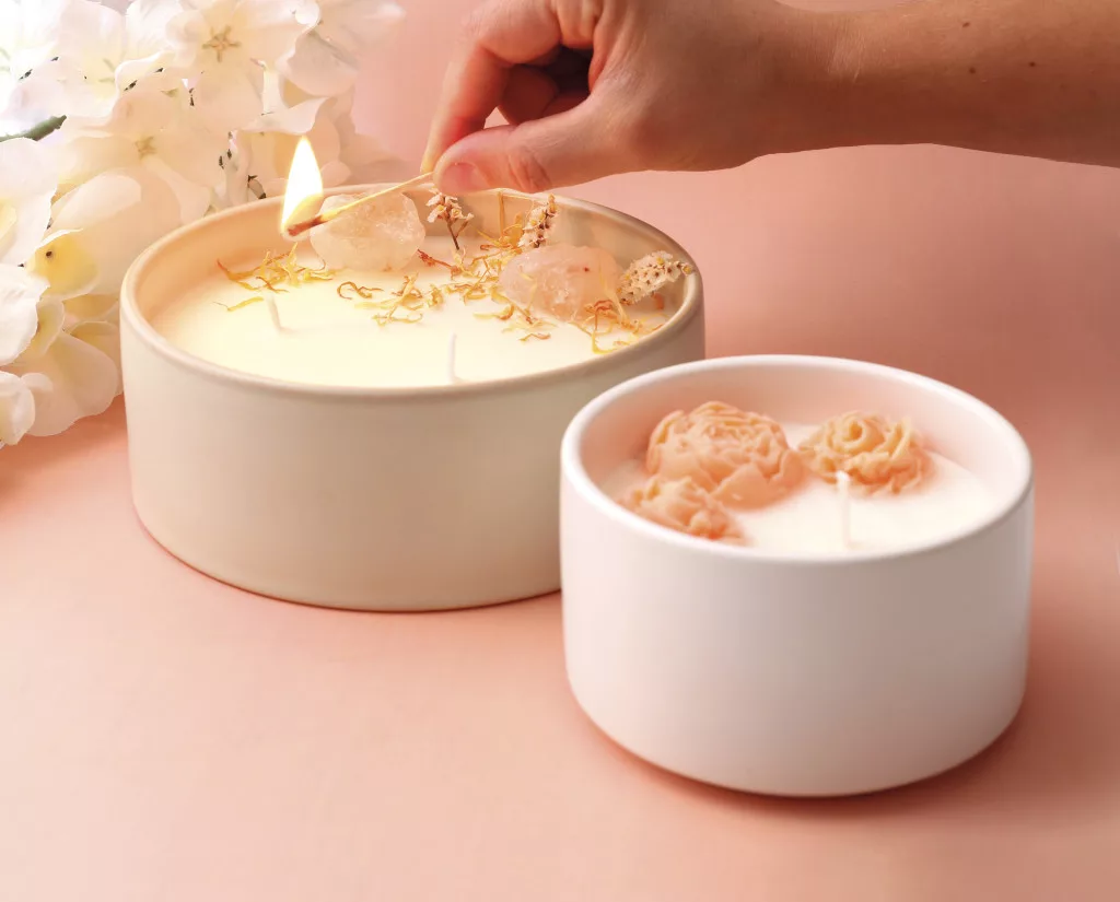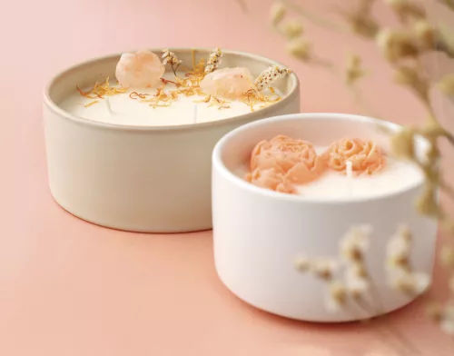 Ez a készlet egy nagy, dekoratív illatgyertya elkészítéséhez kínál minden szükséges alapanyagot. A kerámia edényben készülő gyertyát szárított virágokkal és kristályokkal lehet díszíteni. A vanília illat kellemes, nyugodt hangulatot teremt az otthonban. Az alkotás folyamata pihentető és kreatív kikapcsolódást nyújt.