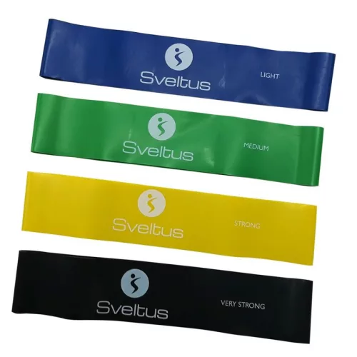 A Sveltus gumiszalag hurok szettje 4 különböző erősségű hurkot tartalmaz. A 4 erősség: 9 kg, 13 kg, 18 kg és 22 kg.