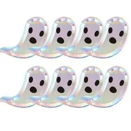 Halloween Ezüst Szellemes Kisméretű Parti Papír Tányér – 8 db, 14,5 cm