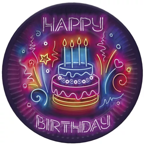 Happy Birthday Neon Cake papírtányér 8 db-os 18 cm