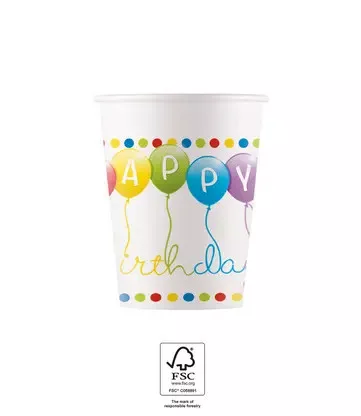 Happy Birthday Streamers papír pohár 8 db-os 200 ml FSC