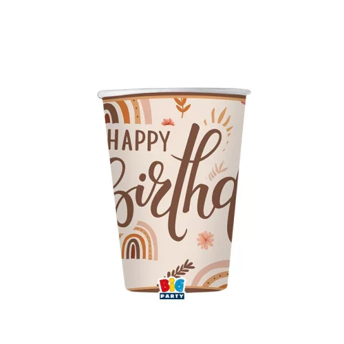 Happy Birthday bohém stílusú parti pohár 8 db 250 ml-es