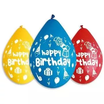 Happy Birthday feliratos lufi vegyes színekben, 30 cm - 5 db