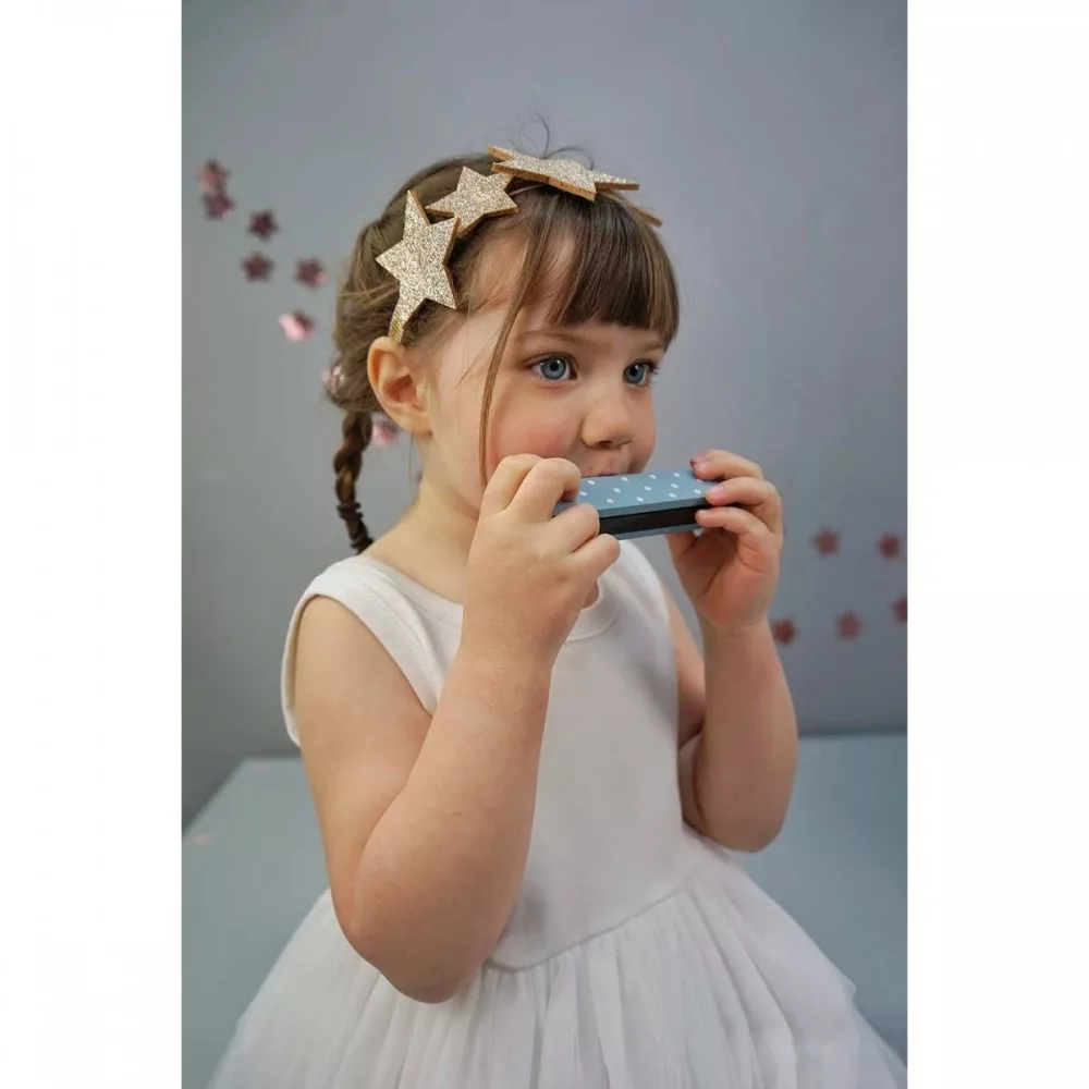 Kék, fából készült, pöttyökkel díszített szájharmónika a Jabadabado márkától!
