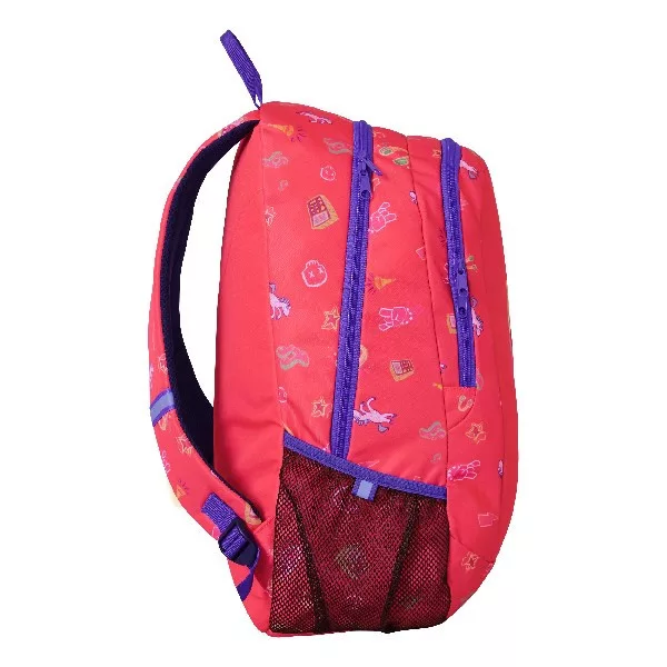 Ez a hátizsák tökéletes választás mindennapi és iskolai használatra is. Nagy belső rekesszel rendelkezik, melyben egy elválasztó található. A táska elején cipzáras, a táska oldalain hálós zsebek találhatók. Párnázott és állítható vállpántok, fényvisszaverő elemek a táska minden oldalán.
