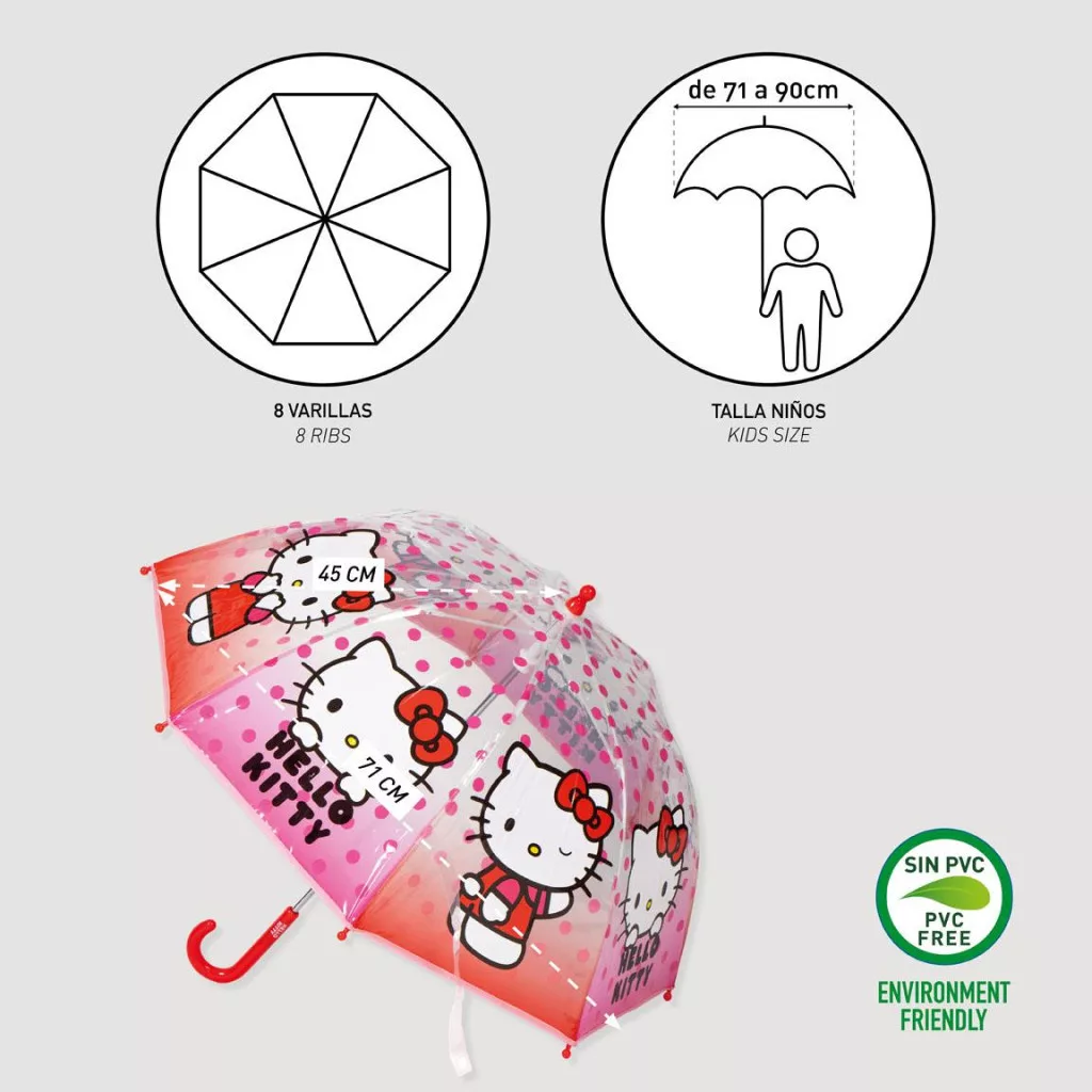 Hello Kitty Dots gyerek átlátszó esernyő Ø71 cm