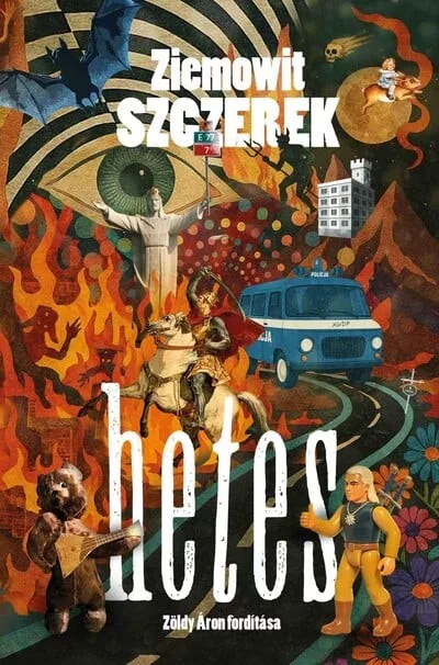 Paweł, egy álhírekre szakosodott online portál újságírója egy rozoga Vectrával Krakkóból Varsóba igyekszik a lengyel utak királynőjén, a Hetesen, mivel másnap fontos találkozója van a fővárosban. A hétköznapinak induló út pillanatok alatt groteszk kalandba fordul, miután felbukkan Geralt, a vaják, és az ő tudatmódosító elixírjei. Paweł útja Varsó felé szürreális látomások, bizarr épületek, világmegváltó hipszterek, falusi mágnások, egy különös stoppos lány és a lengyel lélek legsötétebb bugyrai között kanyarog. És miközben vad táncot jár egymással a valóság és a képzelet, Oroszország váratlanul megtámadja Lengyelországot. A Hetes kegyetlenül őszinte és hisztérikusan szórakoztató görbe tükör Lengyelországról, amelyben a múlt kísértetei, a jelen káosza és a jövő sötét árnyai kavarognak. A Lengyelország szívét átszelő út mentén a táj egyszerre nyers és szimbolikus: végtelen betonkerítések, kifacsart közterek, történelmi sebek és nemzeti mítoszok villannak fel, és a történet egyre inkább időn és téren átívelő pszichedélikus utazássá változik – egyszerre személyes és történelmi léptékben. És ez az őrületes száguldás – ki tudja miért? – valahogy túlságosan is emlékeztet a magyar valóságra. Ziemowit Szczerek (1978) lengyel író, újságíró, a Gazeta Wyborcza és a Polityka munkatársa. Jogot és politológiát végzett, majd az európai szeparatizmusokat és regionalizmusokat tanulmányozta. Újságíróként a kelet-európai térség geopolitikai, történelmi, kulturális „különlegességeinek” szenvedélyes kutatója és szakértője. Magyarul eddig két könyve jelent meg, az Ukrajnáról szóló, és már-már kultikusnak számító Jön Mordor, és felfal minket, avagy a szlávok ­titkos története (2016, Typotex Kiadó), illetve a kiadónk gondozásában 2022-ben megjelent Via Carpatia, amelyben a magyarországi kalandozásait dolgozta fel.