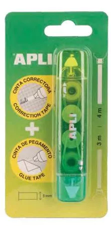 Hibajavító- és ragasztóroller, 2in1, 5 mm x 4-3 m, APLI , vegyes színek