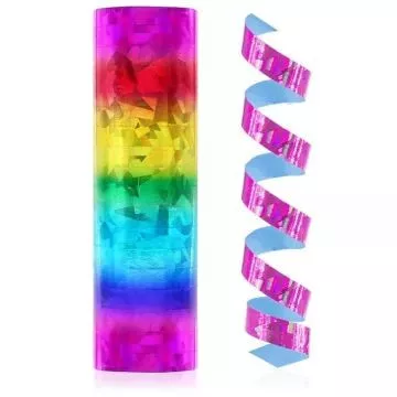 Holografikus szerpentin. A tekercs 18 darab 4 méter hosszú szalagot tartalmaz.