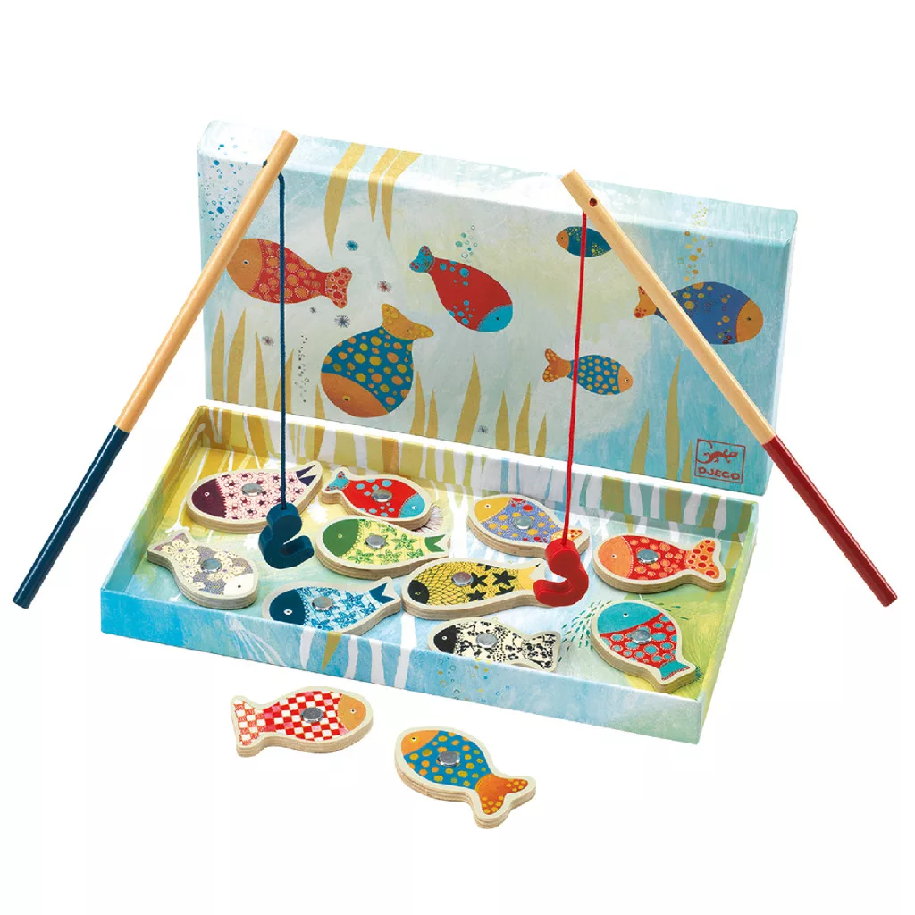 A társasjátékban bájos halacskákat kell kipecázni a mágneses bot segítségével. A különböző alakú és különböző színű halacskákon megfigyelhetőek az azonosságok és a különbségek, de felhasználhatók rajzsémaként is,  saját tó, vagy akvárium rajzolásánál.  Ez a horgász játék remekül fejleszti a szem-kéz koordinációt, segíti a megfigyelés és a gondolkodás fejlődését. A halacskák rajzsémaként való felhasználása kiindulást adhat a saját alkotáshoz, rajzoláshoz, színezéshez is.