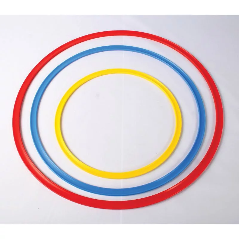 Padlóra helyezve ugróiskola, taktikai edzőpálya alakítható vele, de bója tetejébe is illeszthető. A hullahoop karikát ugráláshoz ugrókötélként is használhatjuk.