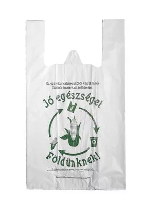 Környezetbarát, komposztálható, biológiai úton lebomló (PLA), megújuló forrásból származó, kukoricakeményítő alapú ingvállas táska.