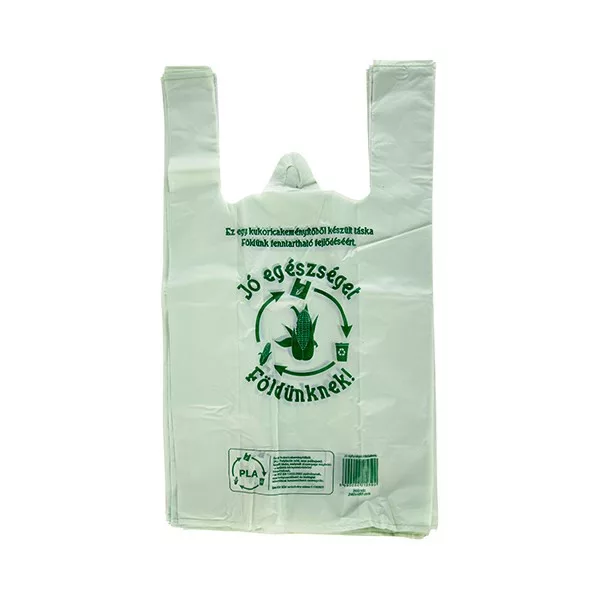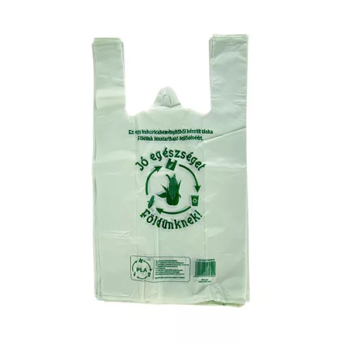 Ingvállas táska lebomló PLA 24x45x12cm vékony Jó egészséget Földünknek felirattal 100 darabos