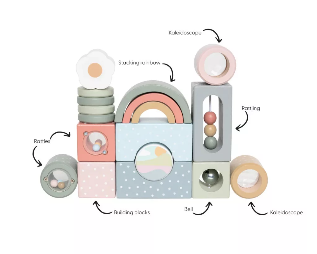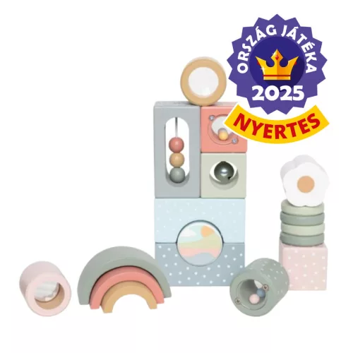 Fedezd fel a hangok és formák teljesen új világát Jabadabado interaktív építőkészletével! Végtelen játék és felfedezési lehetőséget egy készletben! Minden egyes blokk egyedi - némelyik zörög, csörög, és olyan lágy színekkel és mintákkal rendelkezik, amelyek minden kis kalandornak tetszeni fognak. Ez a játékkészlet tökéletesen alkalmas a finommotoros készségek, a koordináció és a kíváncsiság fejlesztésére. Építs tornyokat, hallgasd a hangokat, és élvezd ezeket a kreatív és érzékszerveket stimuláló blokkokat!