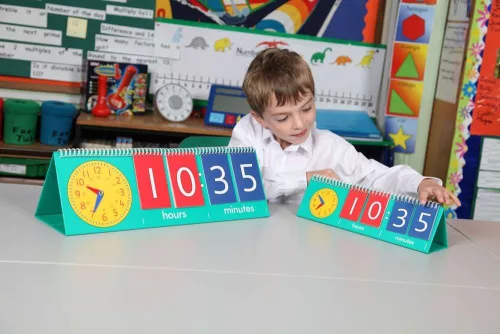 A gyerekek játékosan megtanulhatják, az analóg és a digitális időt! Az órafelület mozgatható,és a mutató különböző színű, hogy a gyerekek könnyen megkülönböztessék (piros) az órát, és a perceket (kék).