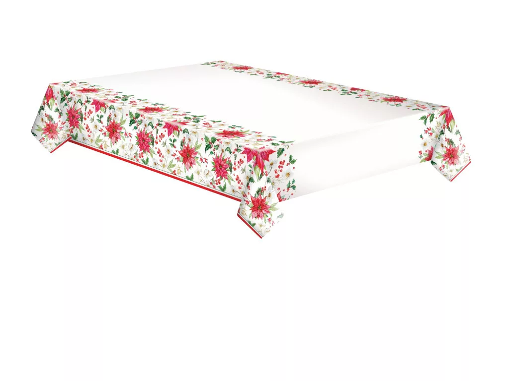 Karácsonyi Poinsettia papír asztalterítő 120x180 cm