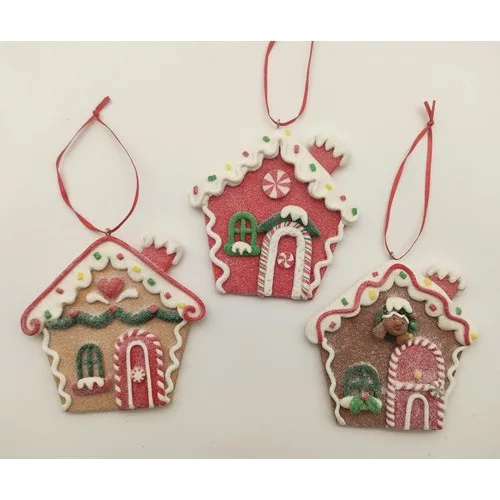 Karácsonyi agyag dísz mézeskalácsház akasztóval 3 féle