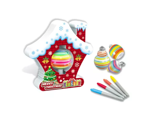 Tedd igazán egyedivé a karácsonyfád saját készítésű, filctollal dekorált díszekkel! Ebben a szettben egy forgatható, világító-zenélő házikó és több karácsonyfadísz vár rád – csak alkoss, színezz, és csodáld meg az ünnepi fényeket és dallamokat!