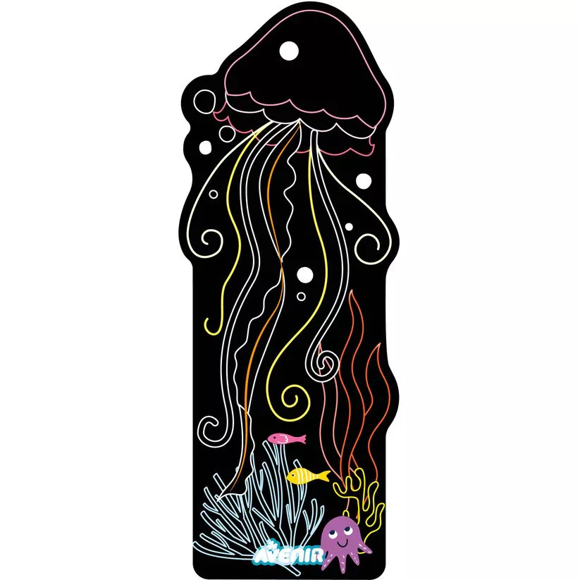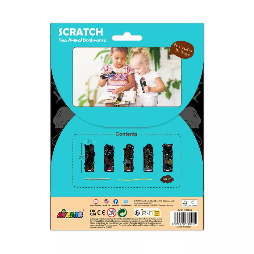 Készíts egyedi könyvjelzőket karckép technikával! A készletben 5 db 20,5 x 8 cm-es karcolható könyvjelző, valamint szalag és egy karceszköz található.