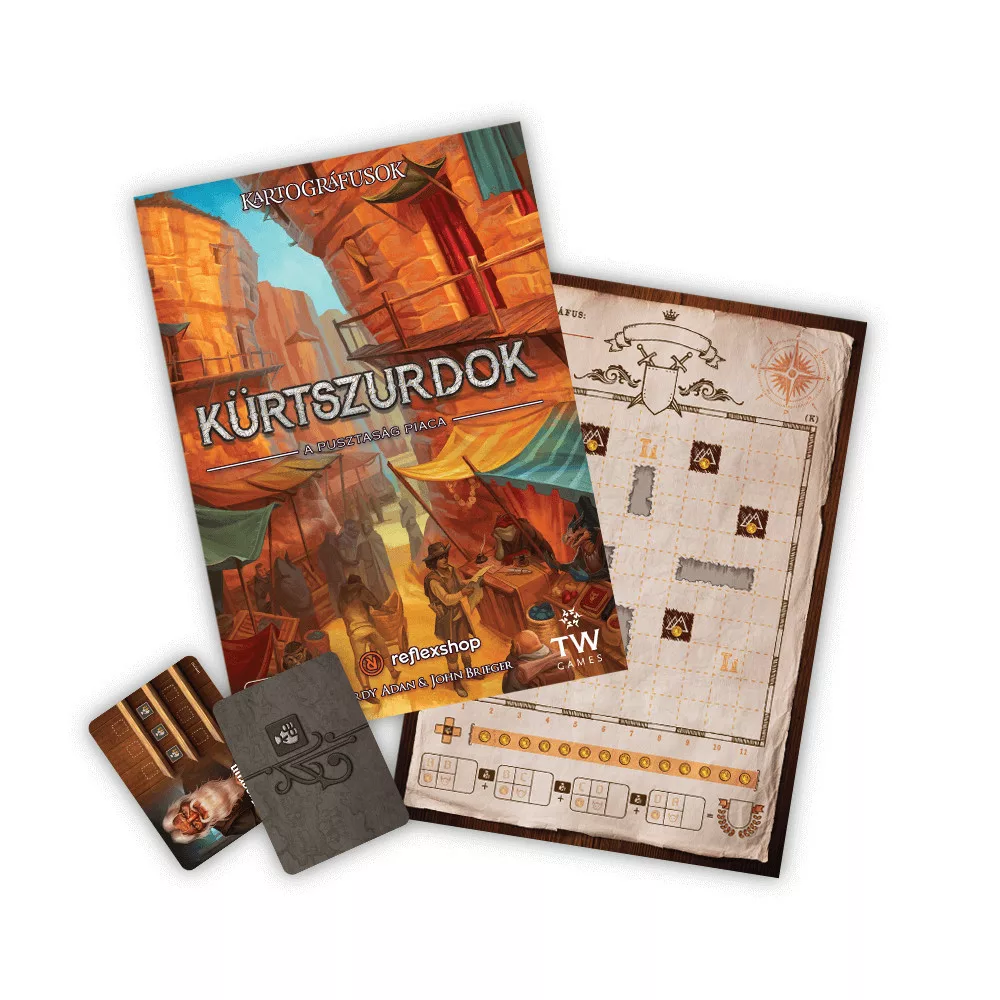 A kiegészítő 75 db kétoldalú térképlapkákat tartalmaz, továbbá 6 darab árus kártya - kártyák, amelyek direkt ehhez a térképhez készültek.
