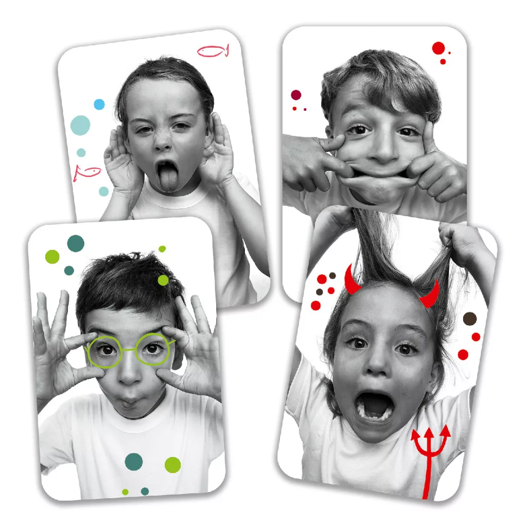 Ez a grimaszokat utánozó, kitalálós játék a francia Djeco cég izgalmas, egyedi tervezésű, színes játéka. Lényege, hogy jegyezd meg a kártyán látható grimaszokat és a többieknek meg ki kell azokat találniuk. A játékban a játék és a humor összefügg, órányi vicces perceket, felejthetetlen pillanatokat ígér! A grimaszolós, mimikai játékoknak fejlesztő hatása van a beszédkészségre is. A Djeco kreativitást és gondolkodást fejlesztő termékei minden korosztály számára izgalmas pillanatokat ígérnek.
