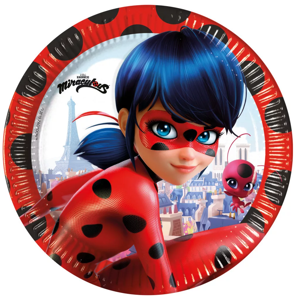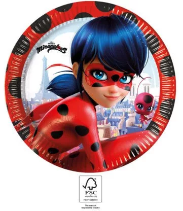 Miraculous Ladybug, Katicabogár és Fekete macska kalandjai papírtányér 8 db-os 23 cm FSC