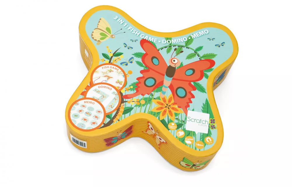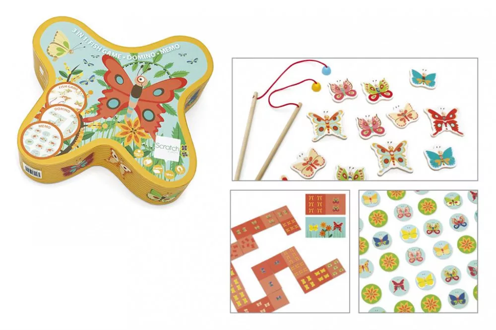 Készségfejlesztő játék -Pillangók -Dominó, memória, mágneses horgászat Scratch Europe