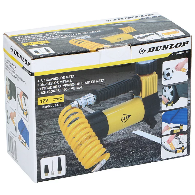 Erőteljes 12 V-os légkompresszor, 100 PSI nyomással.
