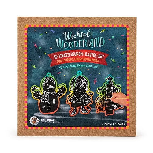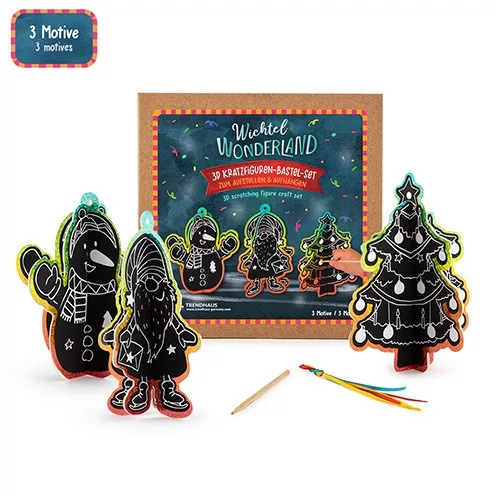 Kreatív kaparós 3D figura Trendhaus Wichtel karácsonyi 3 db-os klt. pálcával, szalaggal