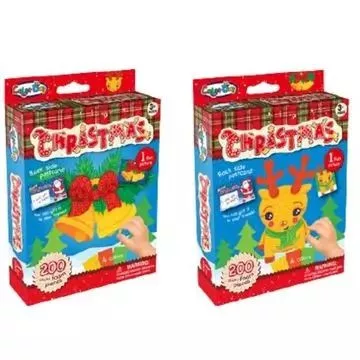 A dobozban sablon és mozaik darabok találhatók 4-féle színben- egy bájos karácsonyi kép alkotható meg kis csengővel vagy rénszarvassal. A kép hátoldala képeslapként funkcionál, így akár fel lehet adni a családtagoknak vagy a barátoknak.