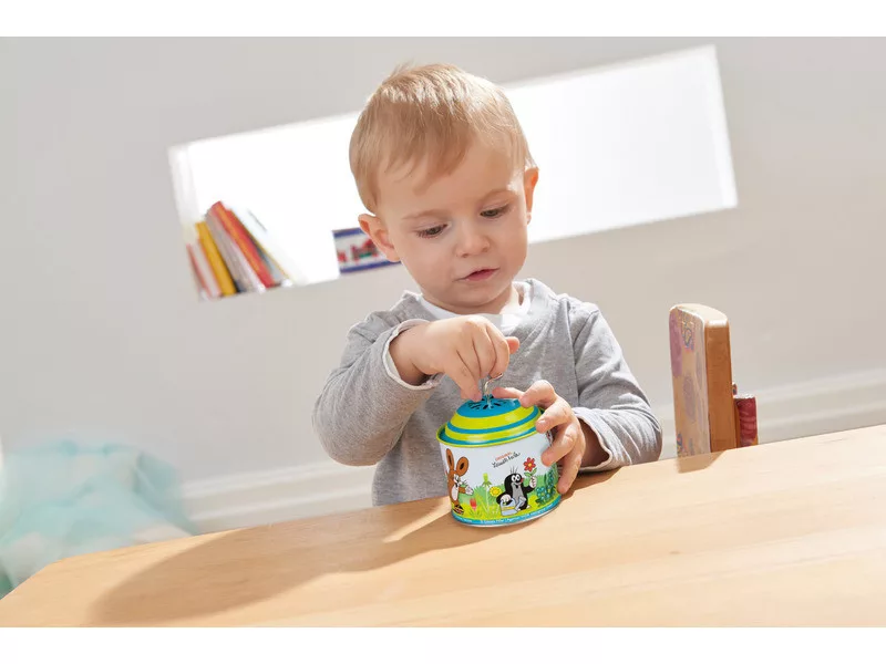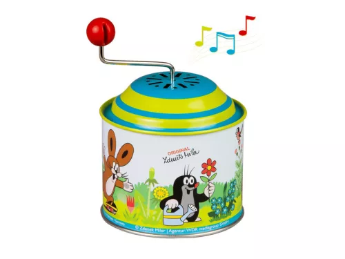 Varázslatos zenélő játék a legkisebbeknek Kisvakond mintázattal! A mechanikus szerkezetű zenedobozka egyszerűen, elem nélkül működik – csak forgatni kell a tetején lévő kart, és máris megszólal a jól ismert dallam. Strapabíró fém kialakításának köszönhetően bátran adható már egyéves kortól. A lágy dallam megnyugtatja, altatja, fejleszti a babák zenei érzékét.