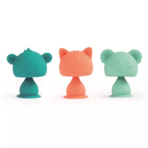 A LUDI Swing Pop állatkái, bármilyen sima felületre könnyedén odatapnak, így bárhol szórakoztathatja kisbabádat, legyen szó az etető székről vagy a fürdőkádról. A cuki koala, mosómedve vagy majmocska szuper puha és strapabíró anyagból készültek. Élénk színeiknek és kellemes tapintásuknak nem tudnak ellenállni a babák. Kedvükre hajlíthatják és rágcsálhatják őket.