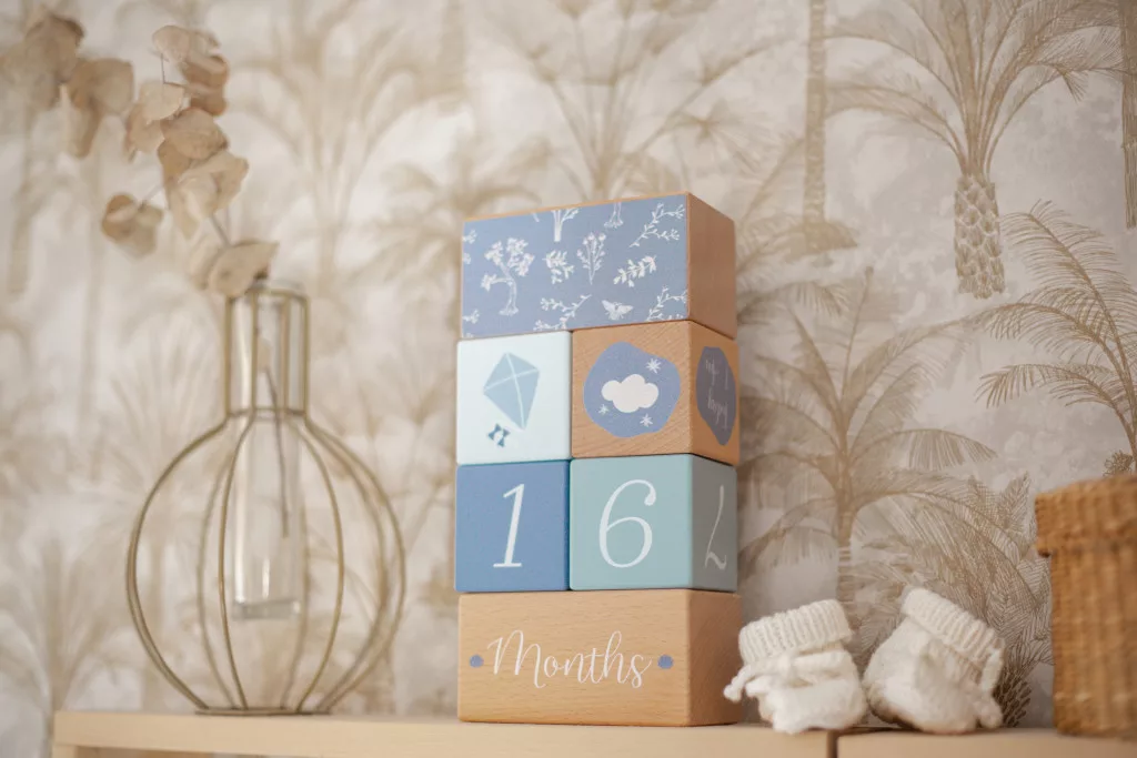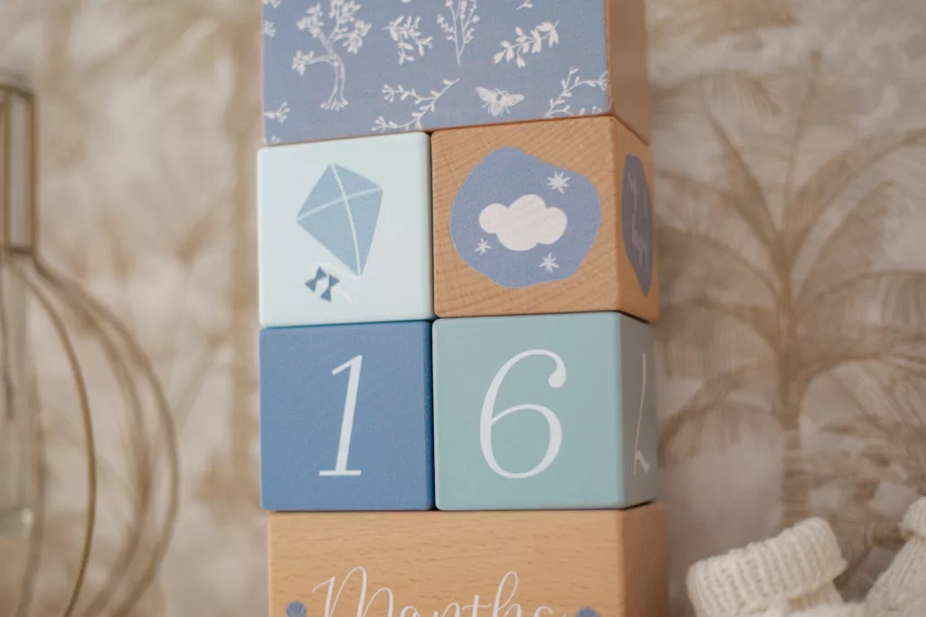 • Bababarát anyagok: A mérföldkőkockák bababarát festékkel vannak kezelve, így teljesen biztonságosak a legkisebbek számára is.