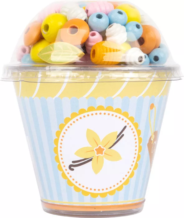 Legler fa gyöngyfűző készlet muffin formában – színes fűzhető gyöngyök trendi cupcake tárolóban