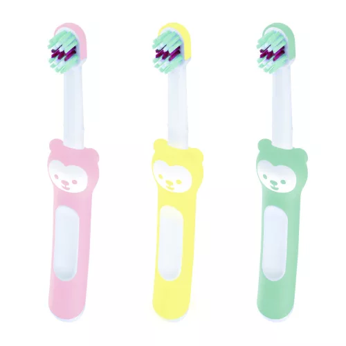 A Baby's Brush segítségével a babák könnyen tudják utánozni a felnõttek fogmosó mozdulatait.Így az önálló fogmosást kezdettõl fogva helyesen tanulják. Jellemzõi:Rövid, kompakt nyél, hogy a felnõttek fogmosó mozdulatait utánozni tudják.Masszírozó fej az érzékeny fogínyek masszírozására. A rendelni kívánt színt megjegyzésbe kérjük feltüntetni.- Fontos! A termék egészségvédelmi és higiéniai terméknek minõsül. Amennyiben a csomagolás felbontásra került, vagy a kipróbálás jelei látszódnak a terméken, úgy a 14 napos elállási jog érvényét veszíti a 45/2014. (II. 26.) korm. rendelet 29. § (1) bekezdése alapján.