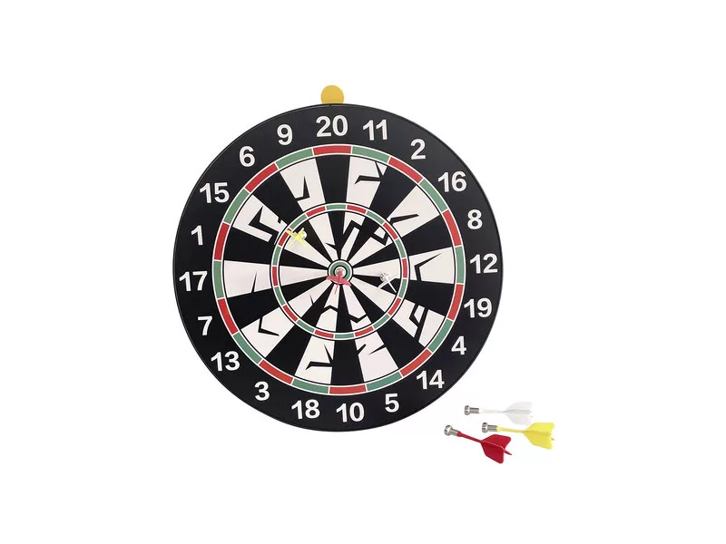 Dobjatok célba a biztonságos darts táblán! A Mágneses darts tábla készlet fémből készült tábla, amin gyakorolhatjátok a célzást és a célba dobást is! A tábla szabványos számozással készült, a műanyag nyilak erős mágnessel rendelkeznek, amik megtapadnak a tábla felületén. A készlet a tábla mellett összesen 6 darab dobónyilat is tartalmaz, a táblát egy kampóval szinte bárhova fel lehet akasztani!