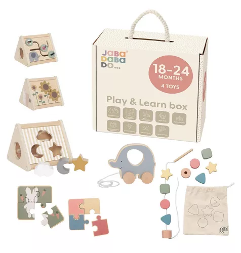 Ez a Jabadabado játék- és tanulódoboz négy gondosan kiválasztott játékot tartalmaz, amelyek célja, hogy a gyermek számára izgalmas lehetőségeket nyújtsanak a játék és a fejlődés útján. Minden játék legfontosabb célja, hogy a 18-24 hónapos gyermek fejleszthesse motoros készségeit és serkentse kognitív képességeit.