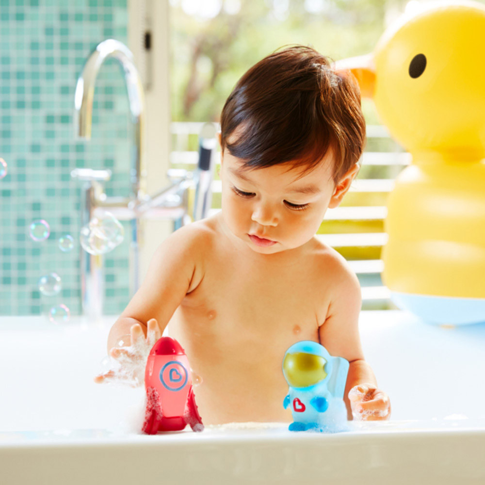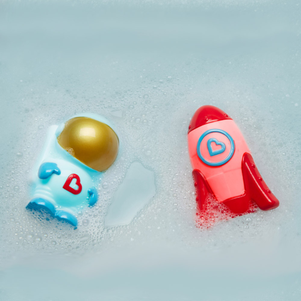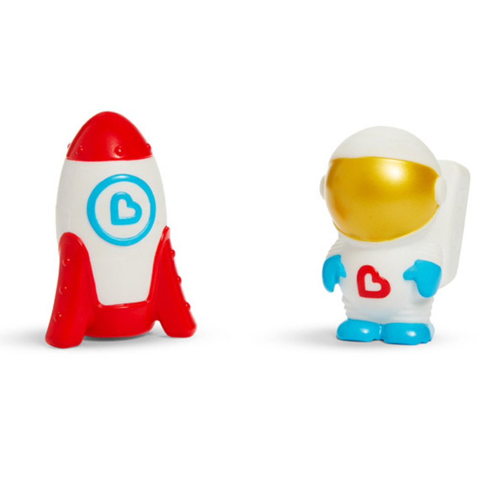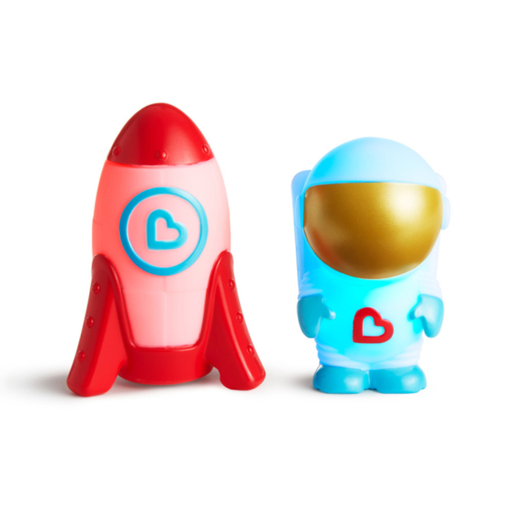 A Munchkin Galaxy világító fürdõjáték egy igazán izgalmas játék a legkisebbeknek. A vízben világító asztronauta és ûrhajó párosa elkápráztatja a legkisebbeket is. Csak tedd õket a vízbe és azonnal felgyullad a fény és már indulhat is a móka.Fõbb jellemzõk:•Biztonságos, vízálló:A vízbiztos LED fények érintésre vagy vízbe helyezve felgyulladnak és 15 mp-en keresztül világít.•Fejleszt: Segíti a baba szem-kéz koordinációjának fejlõdését és az ok-okozat megértését•Izgalmas, különleges: A vízben világító játék teljesen elkápráztatja a gyerekeket.Technikai jellemzõk:•2 db elemes fürdõjáték (a játékok beépített elemmel rendelkeznek, melyek nem eltávolíthatók)•9 hónapos kortól ajánlott•Tisztítás: Öblítse le langyos vízzel, és törölje szárazra.