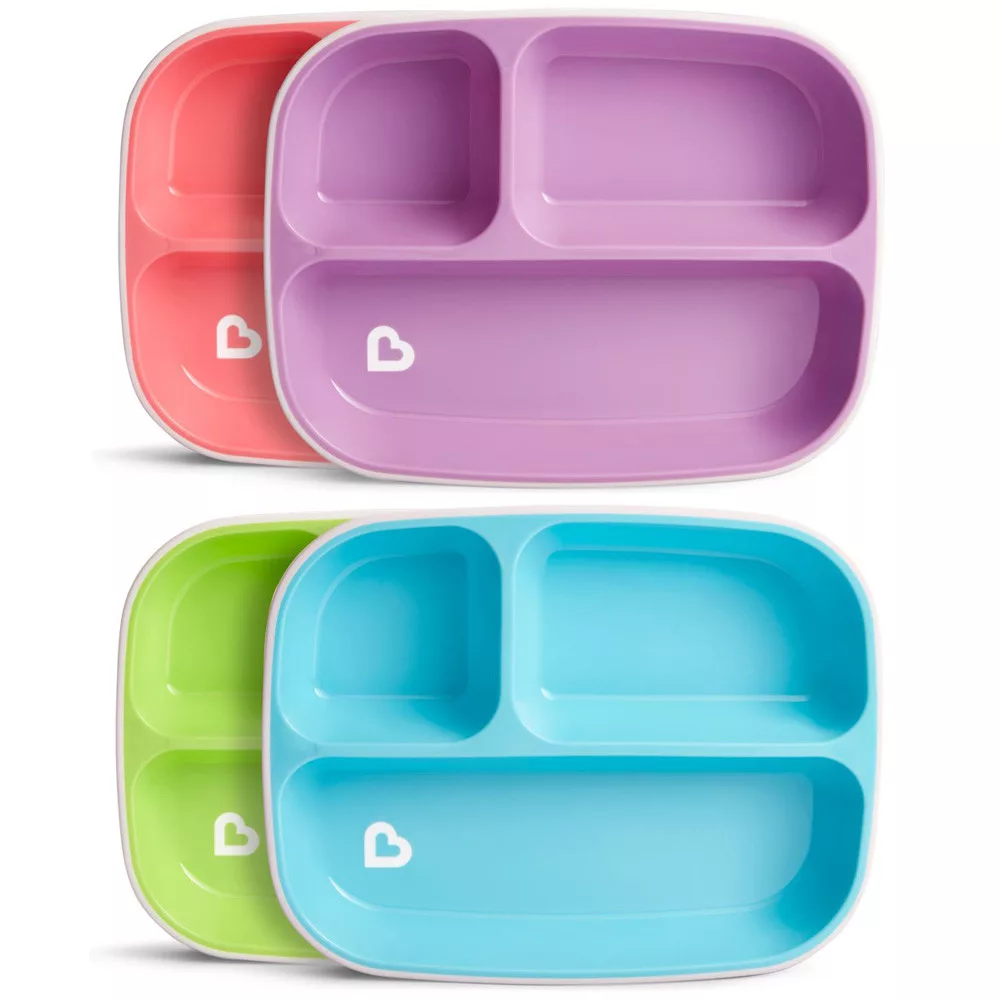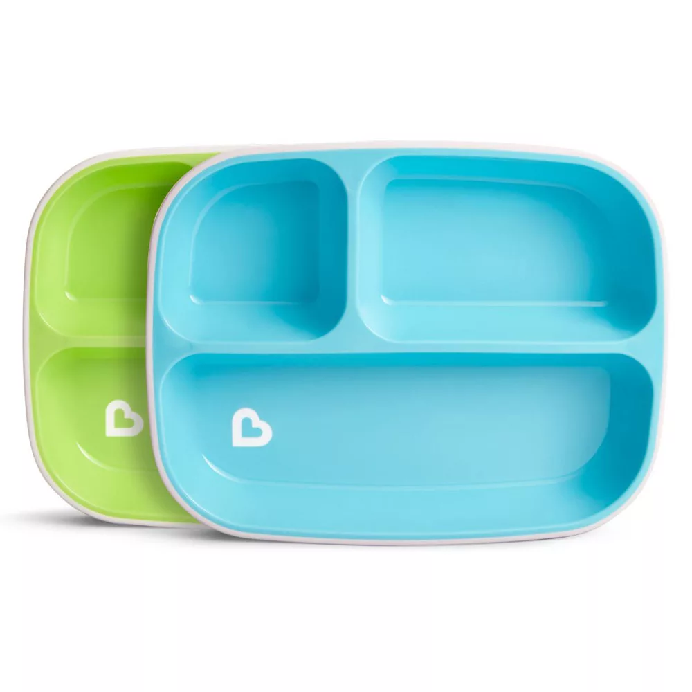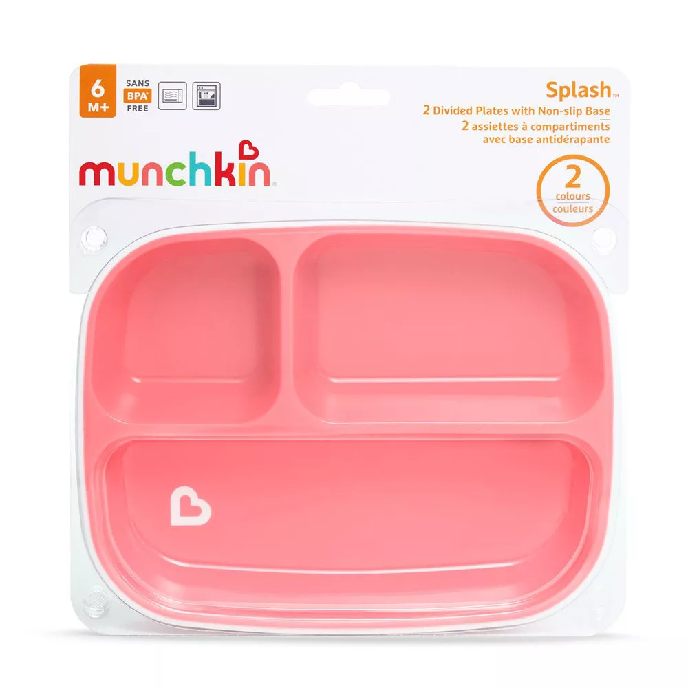 A Munchkin Splash háromrekeszes tányér nélkülözhetetlen eszköze a babákkal közösen elfogyasztott reggelinek, ebédnek és vacsorának. A három különbözõ rekeszben három különféle ételt tudsz szépen elkülönítve tálalni, míg a csúszásmentes alj segít, hogy kisebb legyen a rendetlenség az étkezések során.Fõbb jellemzõk:•Modern design, vidám színek•Csúszásgátló alj: A tányér alja nem csúszkál az asztalon, mint a sima tányérok.•Magas oldalfal:Könnyebben kanalaznak belõle a kicsik és kevésbe esik ki belõle az étel kanalazás közben.•Könnyen tárolható: A tányérok egymásba illeszkednek, így kis helyen tárolhatók•Szetté egészíthetõ ki: A Splash termékcsalád tálkáival együtt komplett kis étkészlete lehet gyermekednek.Technikai jellemzõk:•2 db, különbözõ színû tányér•6 hónapos kortól ajánlott•Mosogatógép felsõ rácsán mosható•Mikrohulllámú sütõben használható•BPA-mentes- Fontos! A termék egészségvédelmi és higiéniai terméknek minõsül. Amennyiben a csomagolás felbontásra került, vagy a kipróbálás jelei látszódnak a terméken, úgy a 14 napos elállási jog érvényét veszíti a 45/2014. (II. 26.) korm. rendelet 29. § (1) bekezdése alapján.