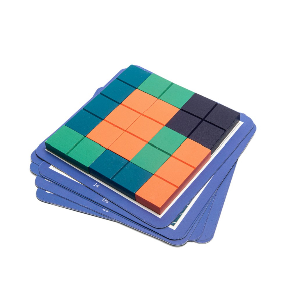 Tedd próbára logikád a BS-Toys kirakós játékával. Feladatod egyszerű: próbáld meg letakarni a faelemmel a feladványkártyán lévő pontokat. A szabály egyszerű: mindig csak a játékelemmel azonos színű pontot takarhatod le és egy elem csak egy pontot fedhet.