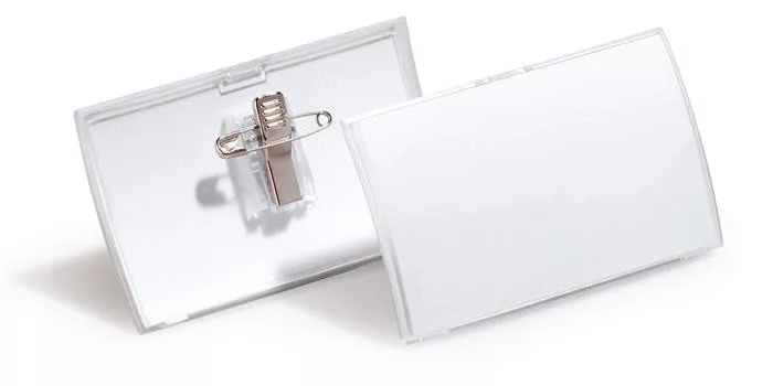 Névkitűző, csíptetővel és tűvel, PP, 54x90 mm, DURABLE "CLICK FOLD"