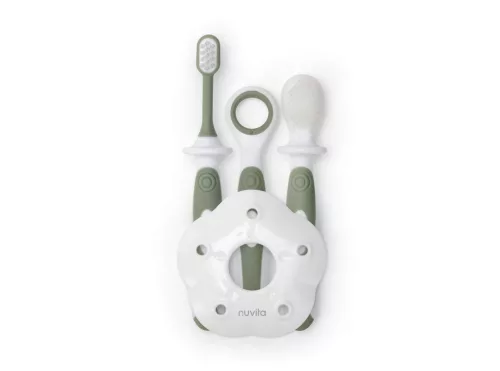 A Nuvita 1101 Szájhigiéniai Szett végigkíséri gyermekedet a fogzás teljes folyamatán – az első hónapoktól egészen a fogkefe önálló használatáig. A 3 lépcsős szett játékos és biztonságos módon alakítja ki a helyes szájápolási szokásokat már születéstől kezdve.
