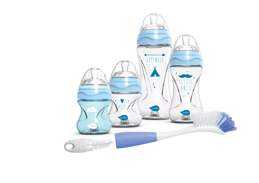 Nuvita cumisüveg szett + Mimic cumisüveg mosó kefe - Blue - 10051