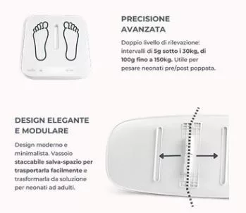• TERHESSÉG ideje alatt: A PrimiPesi Mum & Baby okosmérleg minden súlymérést rögzít a telefonos alkalmazásban, és az adatok keresztezésével a BMI-vel (Body Mass Index), az Közvetlenül okostelefonjáról nyomon követheti súlyát, és biztosíthatja, hogy az a jó egészség paraméterei közé esik.