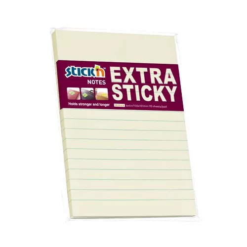 Öntapadós jegyzettömb STICK`N 150x101mm extra erős vonalazott pasztell sárga 90 lap