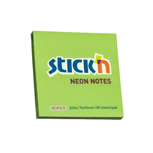 Öntapadós jegyzettömb STICK`N 76x76mm neon zöld 100 lap