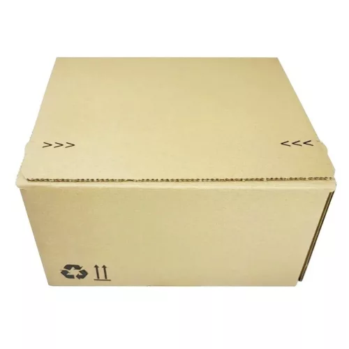 Egy mozdulattal összeállítható. Az alja erősített kivitelű. 3 rétegű, ragasztócsíkkal és nyitást könnyítő perforációval ellátott doboz. Fix, nem változtatható magassággal.