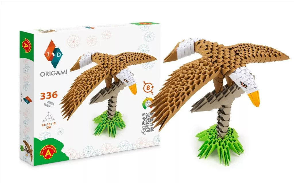 Ezt a szép Origami 3D Sast 336 elemből építheted meg, aminek mérete 24x16x15 cm. Összeállítása kezdő-haladóknak ajánljuk, akik szeretik akik nem zárkóznak el egy pici kihívástól a papírhajtogatás művészetben.