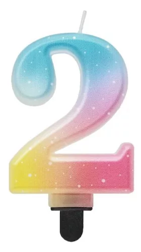 Színes 2-es Pastel Ombre számgyertya, tortagyertya