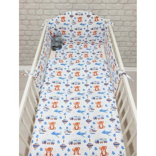 A Pihe-Tex ágynemû bõrbarát, légáteresztõ anyagának köszönhetõen egyenletes hõmérsékletet biztosít, hozzájárulva ezzel kisbabád nyugodt álmához. A párnában és a paplanban lévõ 2 cm vastag poliészter töltet antiallergén. A bõrbarát textilbõl készült Pihe-Tex fejvédõ körbe-körbe kipárnázza a babaágyat, megóvja a folyton izgõ-mozgó Kicsit az esetleges, rács okozta sérülésektõl. Kényelmes, kis bújós fészekké alakítja át a fekhelyét, hogy kisbabád alvás és játék közben is biztonságban érezhesse magát.Rögzítés: kis szalagokkal lehet az ágy rácsához kötözni.Mivel kizárólag kiváló minõségû pamutból készülnek babatextíliáink, ezért méret- és színtartóak.Mosógépben 40 fokon, kímélõ programon tisztítsd õket, és sokáig élvezhetitek szépségüket. Méretek:Párna: 40x50 cmPaplan: 90x140 cmFejvédõ: 190x25 cmAnyaga:Huzat: 100% pamutTöltet: 100% poliészterA képeken látható plüss illusztráció, nem szállítjuk a termékkel együtt.A termék külseje kissé eltérhet a képen szereplõtõl.